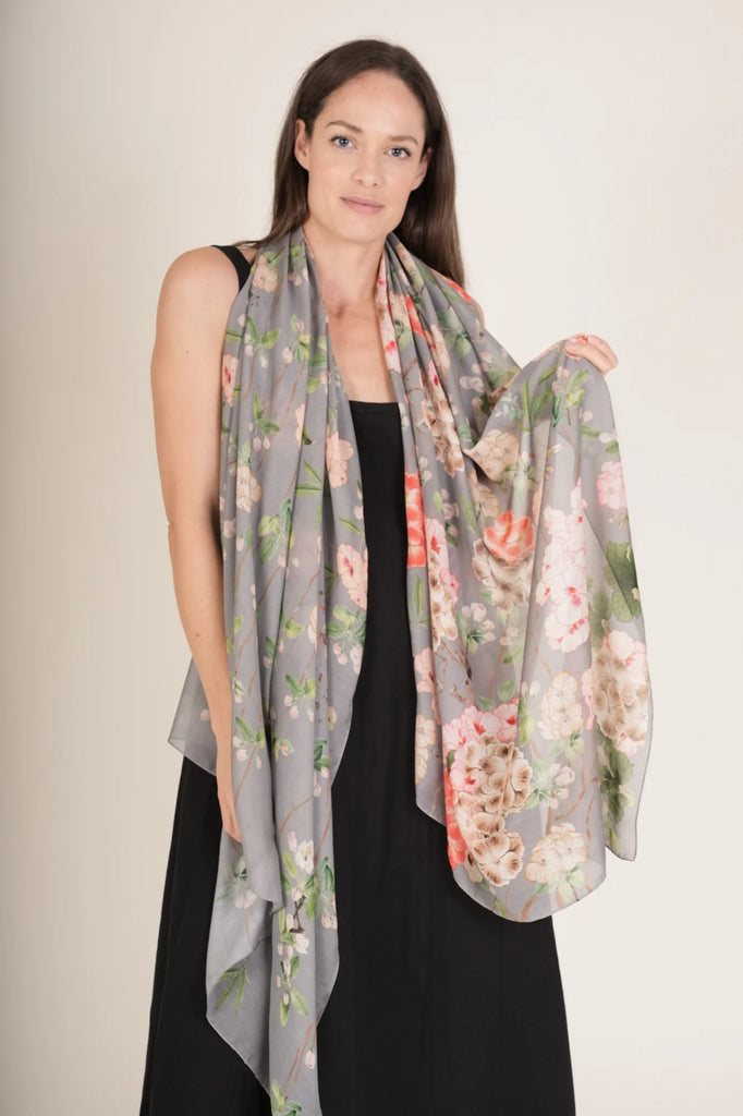 Trailing Blossom Grey Scarf - One Hundred Stars