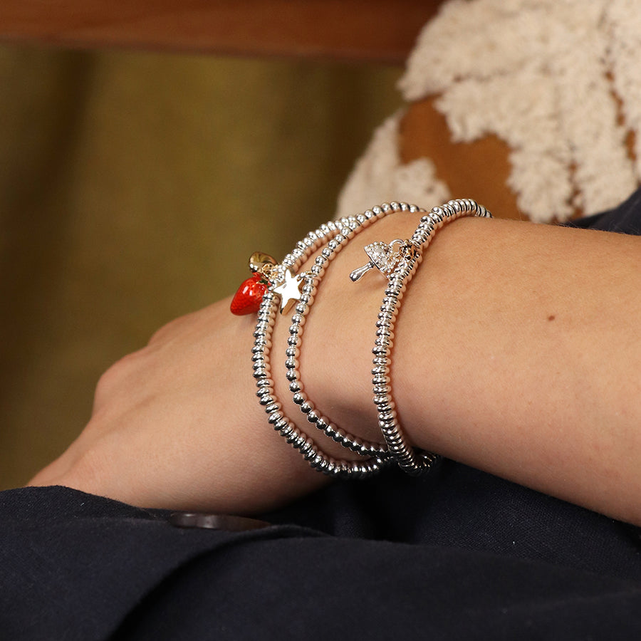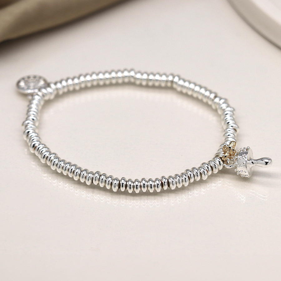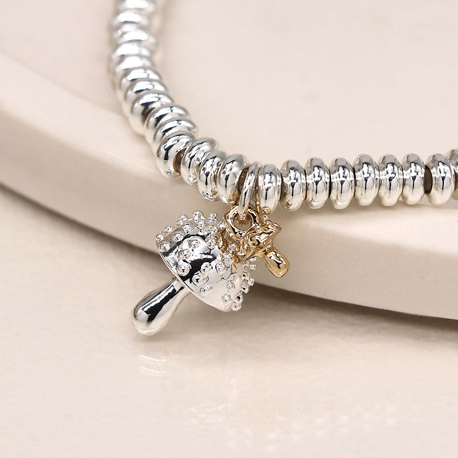 Silver plated and golden double toadstool charm bracelet