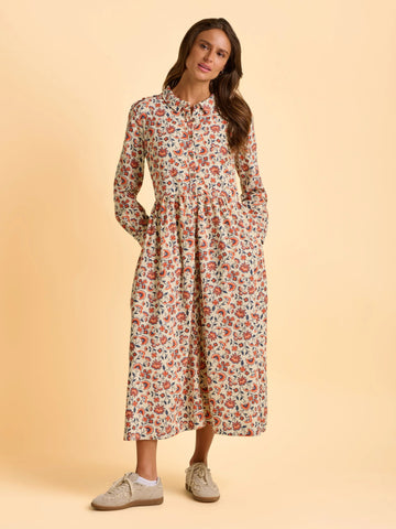 Florals aren’t just for summer - made in our floral printed baby cord our Bella shirt dress is made for cooler seasons. Featuring a gathered waist, full skirt with side seam pockets. The silhouette is utterly flattering. Style with gold jewellery and heeled chelsea boots.