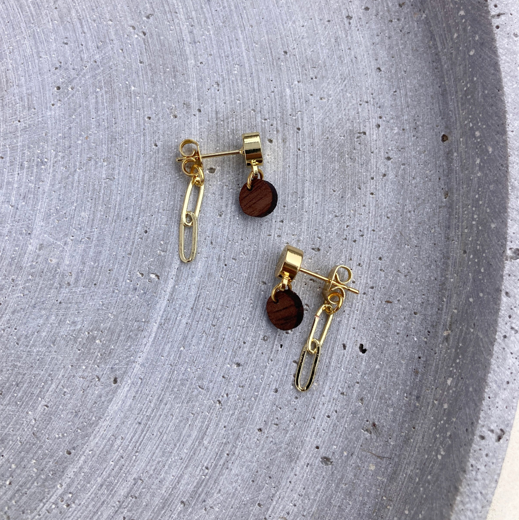 Our Paperclip Studs blend sleek lines with natural elegance, crafted from warm walnut and delicately plated in 18Kt gold. Handmade in Ireland, these studs bring a unique yet understated style to your look—perfect for daily wear or adding a touch of minimalist charm