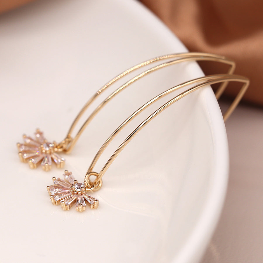 Fine faux gold plated marquis wire earrings with simple crystal deco style fan drops