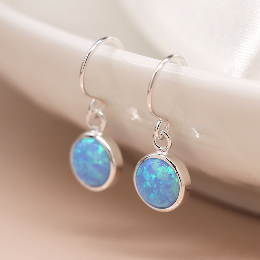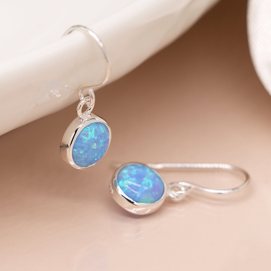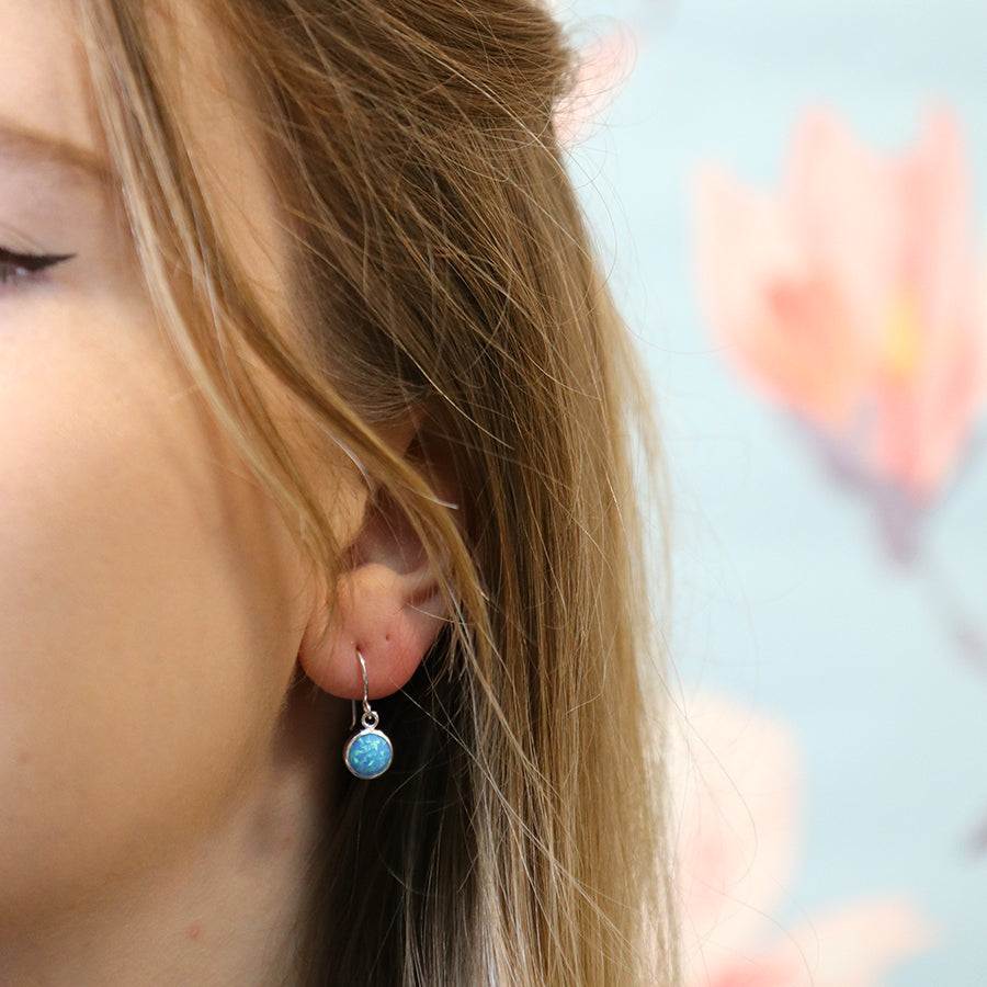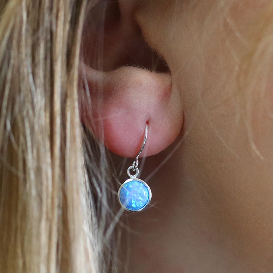 Description: These sterling silver and blue opal studs are truly eye-catching, the clean and simple silver setting perfectly offsets the vibrancy of the opal. The perfect Drop sterling silver earring to add a touch of color to your wardrobe.
