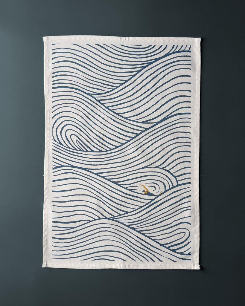 Description : Illustrated Tea Towel featuring the Swimming Stripes artwork by Oldfield Design Co.