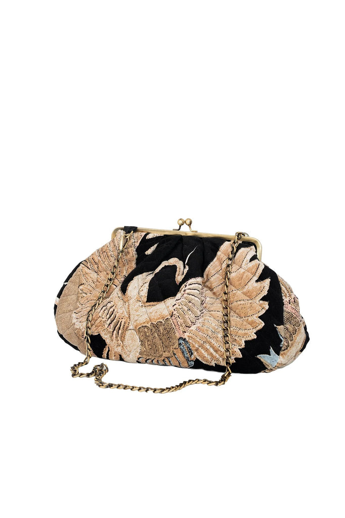 Crane Black Quilted Velvet Kiss Lock Bag - One Hundred Stars