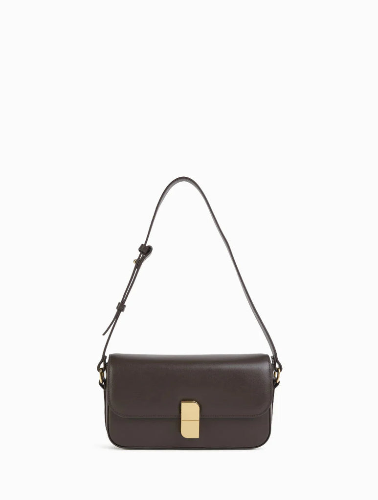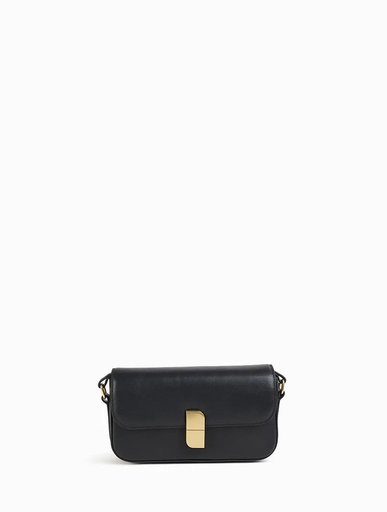 Alice Small is a compact and functional baguette bag. With its rectangular shape and sleek design, it can be worn on the shoulder or across the body thanks to a leather handle that can be adjusted with collar buttons. Its signature nat & nin clasp adds a contemporary and distinguished touch.