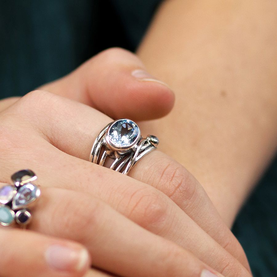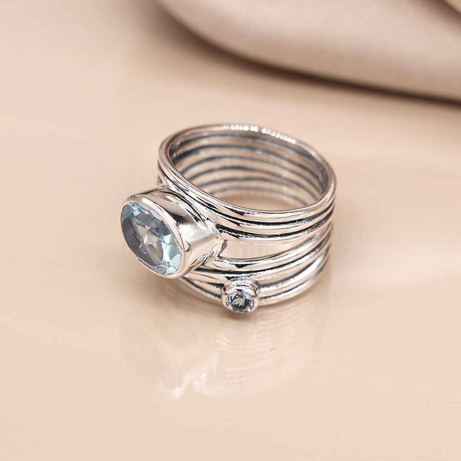 Sterling silver multi-strand Blue Topaz gemstone ring