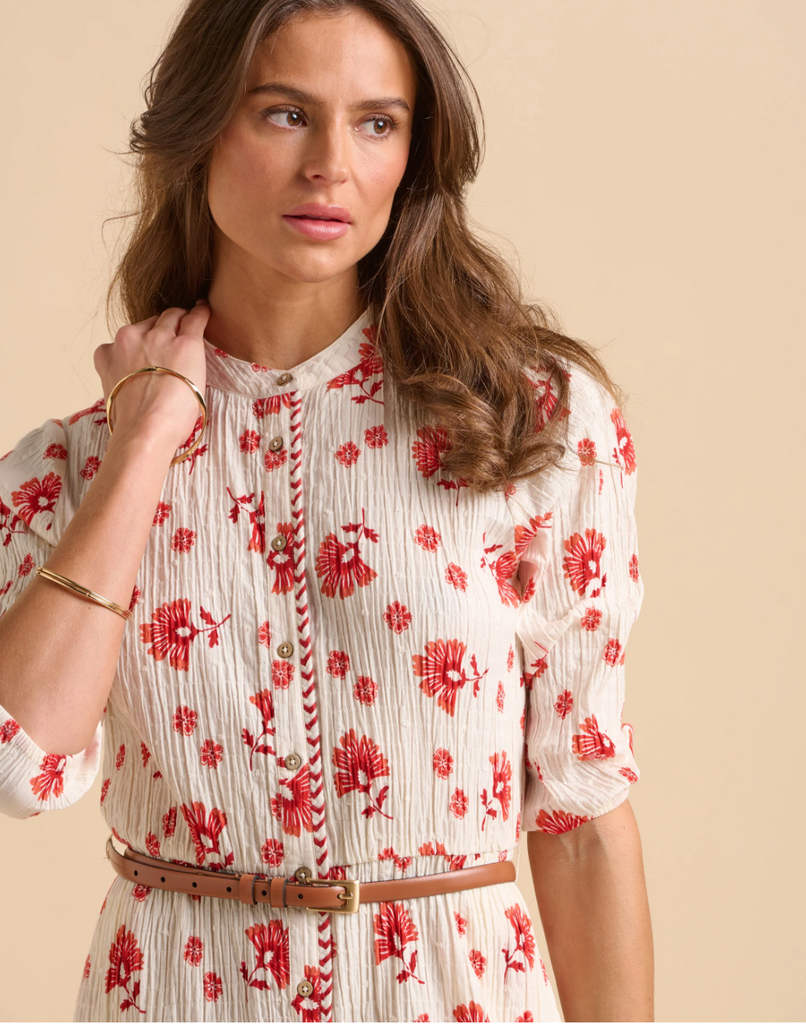 With its crinkled fabric and billowy design, it offers plenty of movement, while the elasticated cuffs and tie waist create shape. Pair with wedges and a shoulder bag for an evening at the roof-top beach bar.