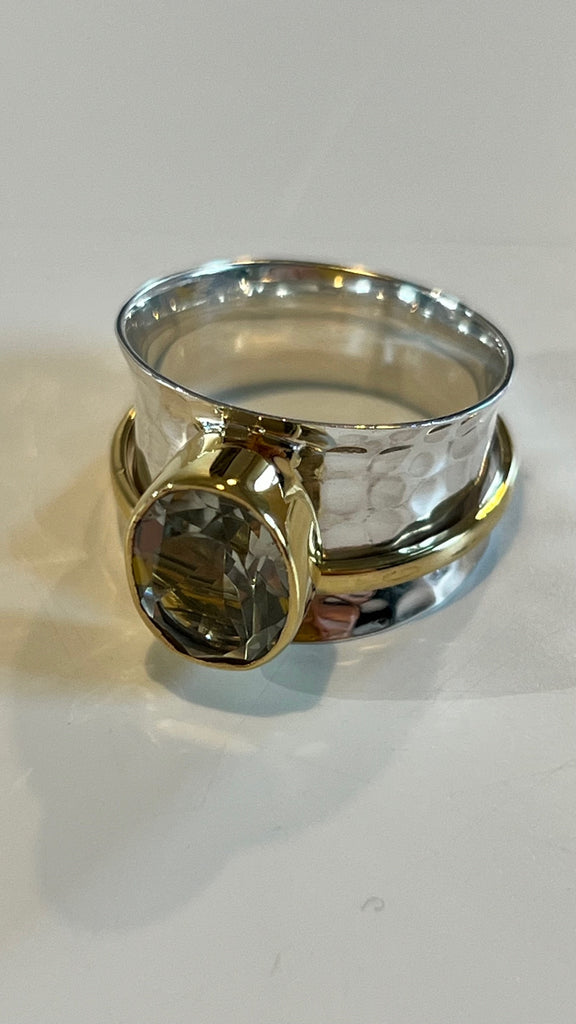Sterling Silver Beaten spinning ring with Green Amethyst