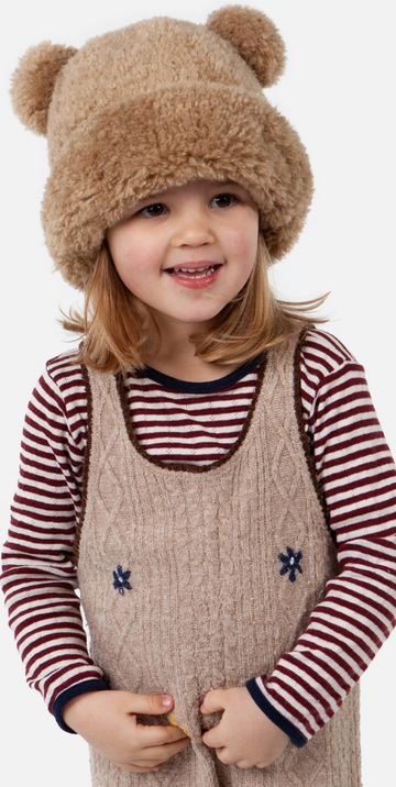 Made from a blend of plush acrylic faux fur and a fleece interior, this hat is soft, comfortable, and designed to offer reliable warmth. The light brown hue adds a neutral, earthy tone that complements many winter coats and outfits. It’s a sweet and functional accessory your child will love to reach for.